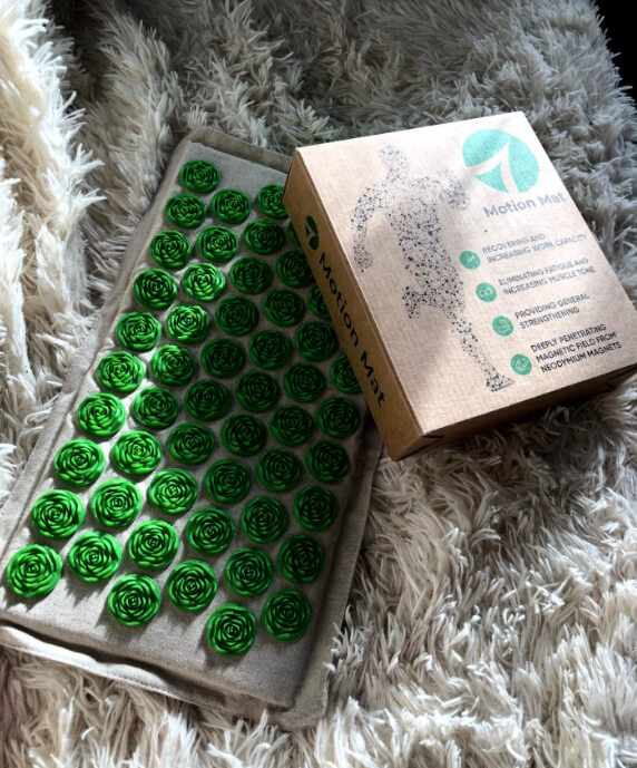 Podložka je vyrobená ze lnu s kokosovými vlákny, která dobře drží tvar. Díky tomu se podložka neshrnuje, když měníte polohu. Motion Mat má "jehličky" vyrobené z medicinálního HIPS plastu, které tvoří motiv květů se špičatými okvětními lístky.